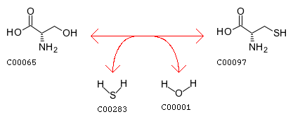 R00891 L-Serine + Hydrogen sulfide <=> L-Cysteine + H2O