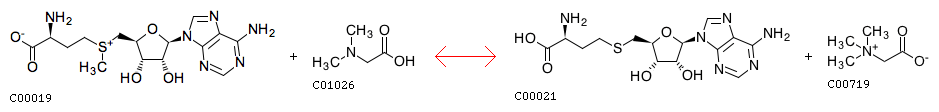 R07244 S-Adenosyl-L-methionine + N,N-Dimethylglycine <=> S-Adenosyl-L-homocysteine + Betaine