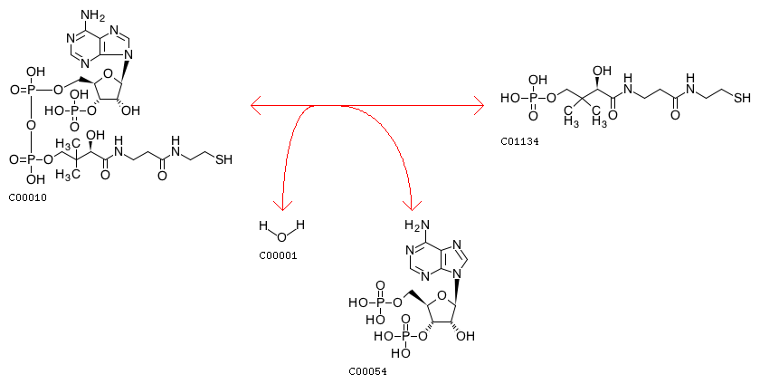 CoA + H2O <=> Pantetheine 4'-phosphate + Adenosine 3',5'-bisphosphate