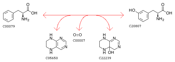 R12543 L-Phenylalanine + Tetrahydropteridine + Oxygen <=> 3-Hydroxy-L-phenylalanine + 4a-Hydroxy-5,6,7,8-tetrahydropteridine