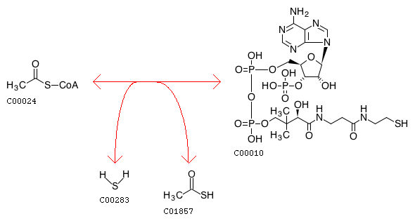 R01850 Acetyl-CoA + Hydrogen sulfide <=> CoA + Thioacetate
