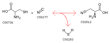 R02846 Cysteine + Cyanide ion <=> Hydrogen sulfide + 3-Cyano-L-alanine