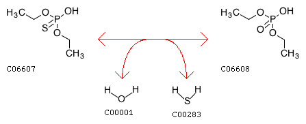 Diethylthiophosphoric acid + H2O <=> Diethylphosphoric acid + Hydrogen sulfide