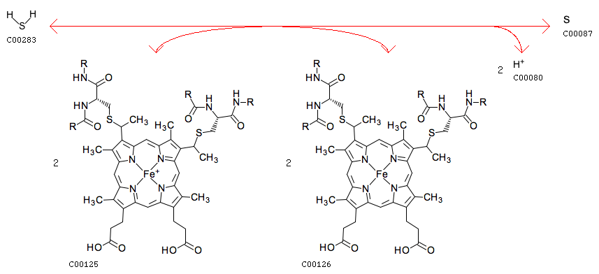 R09499 Hydrogen sulfide + 2 Ferricytochrome c <=> Sulfur + 2 Ferrocytochrome c + 2 H+