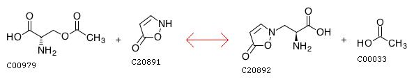 R10839 O-Acetyl-L-serine + Isoxazolin-5-one <=> 3-(5-Oxoisoxazolin-2-yl)-L-alanine + Acetate